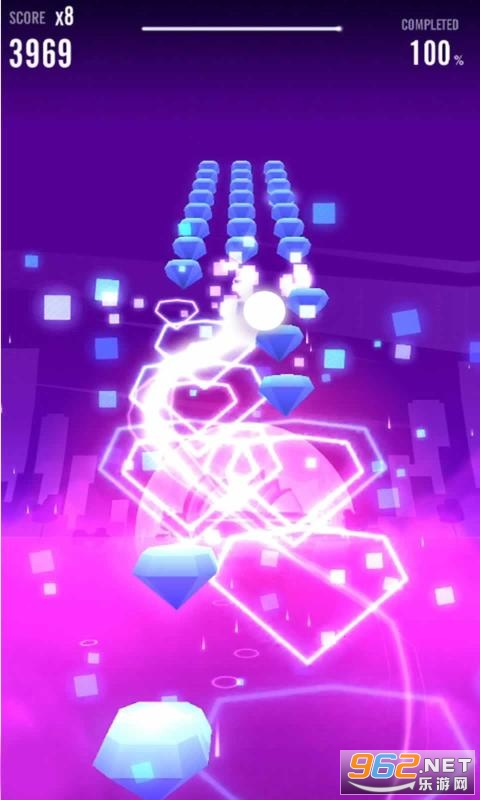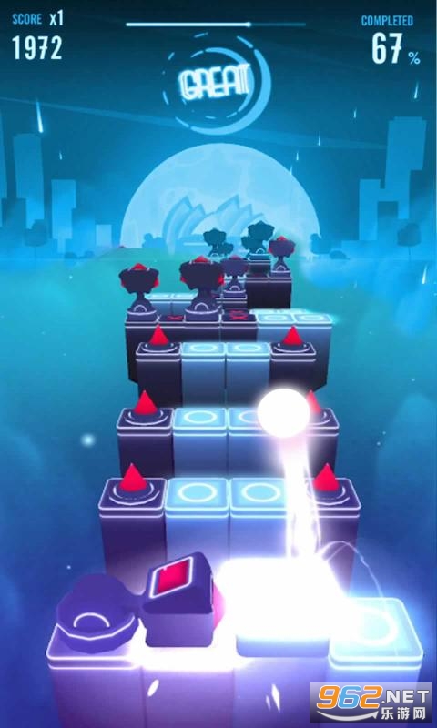 游戏操作简单,玩家只需根据音乐节奏按住并拖动球跳跃到下一个方块的中心点即可。