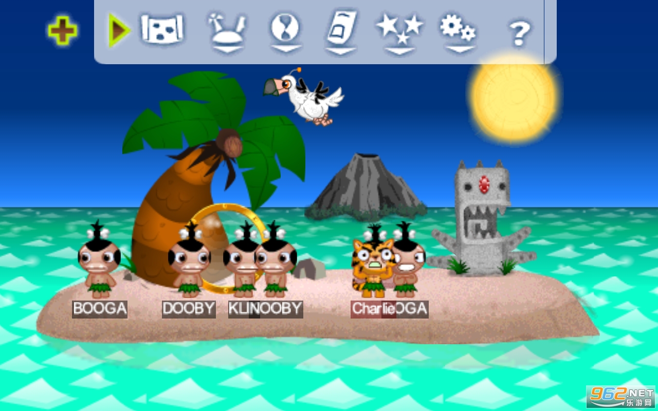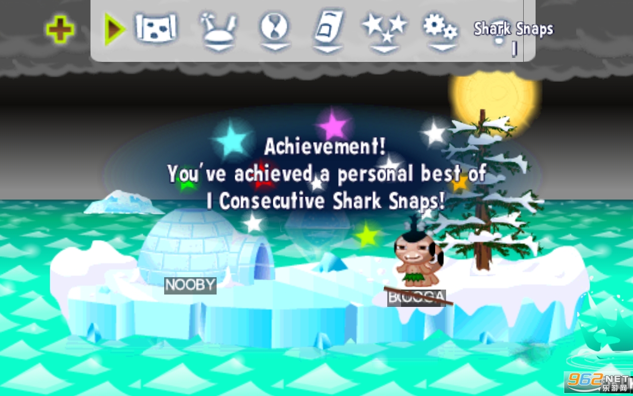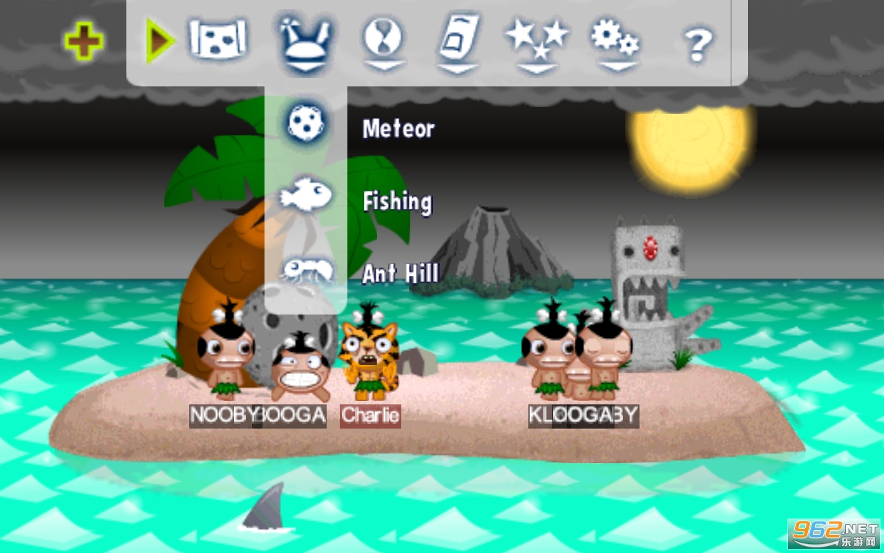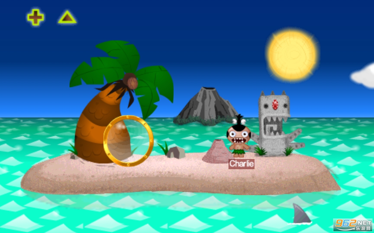 2.从岛的前部向广阔的大海里丢土著人,要瞄准屏幕中央的冰块,就可以召唤出冰怪兽。
