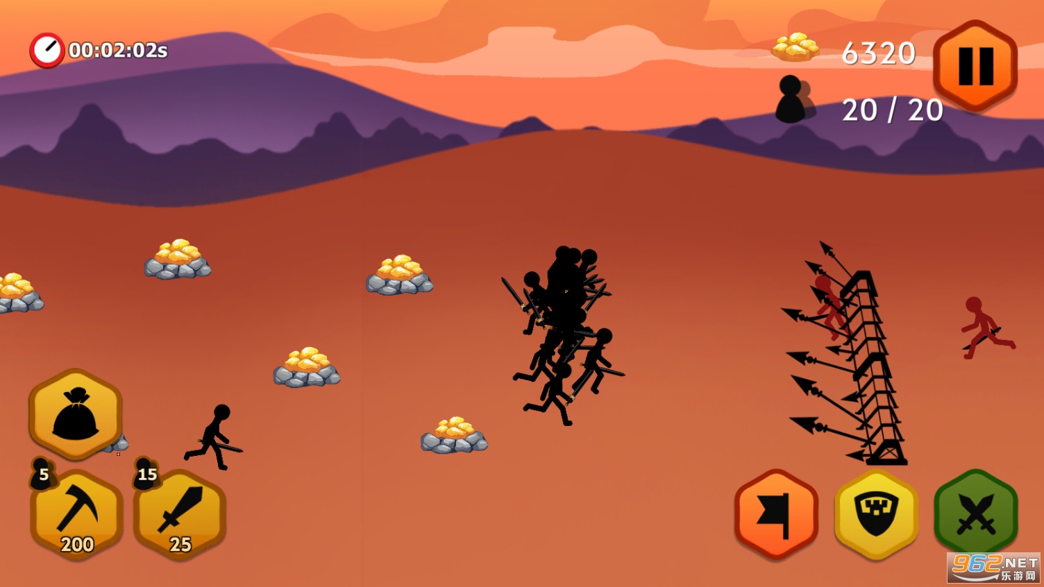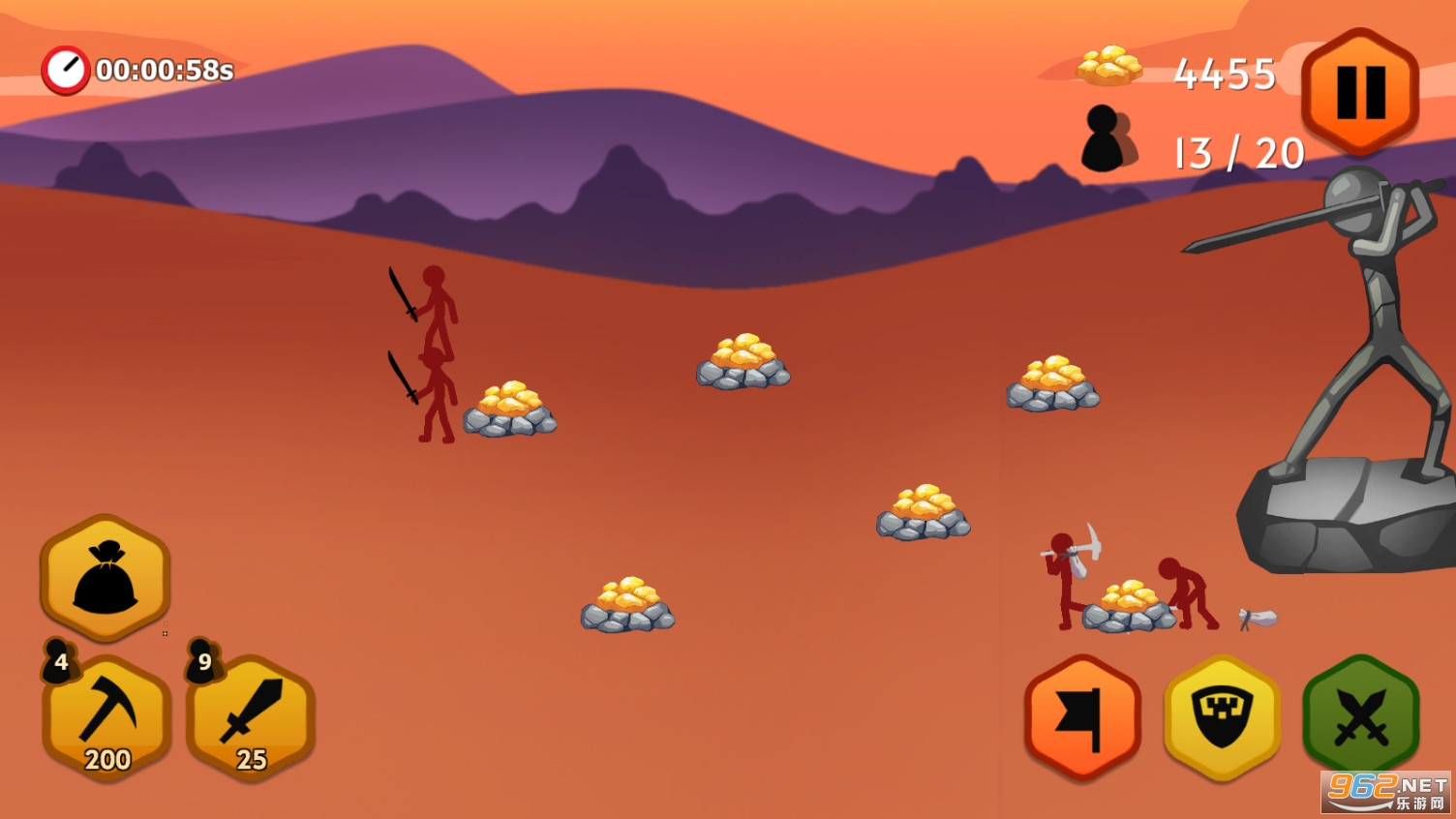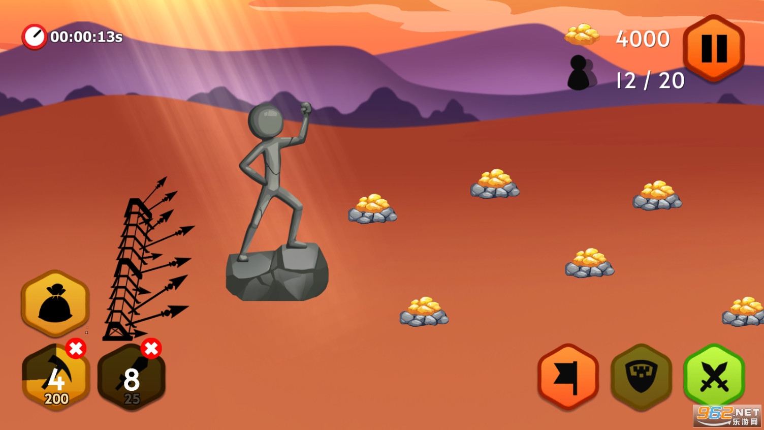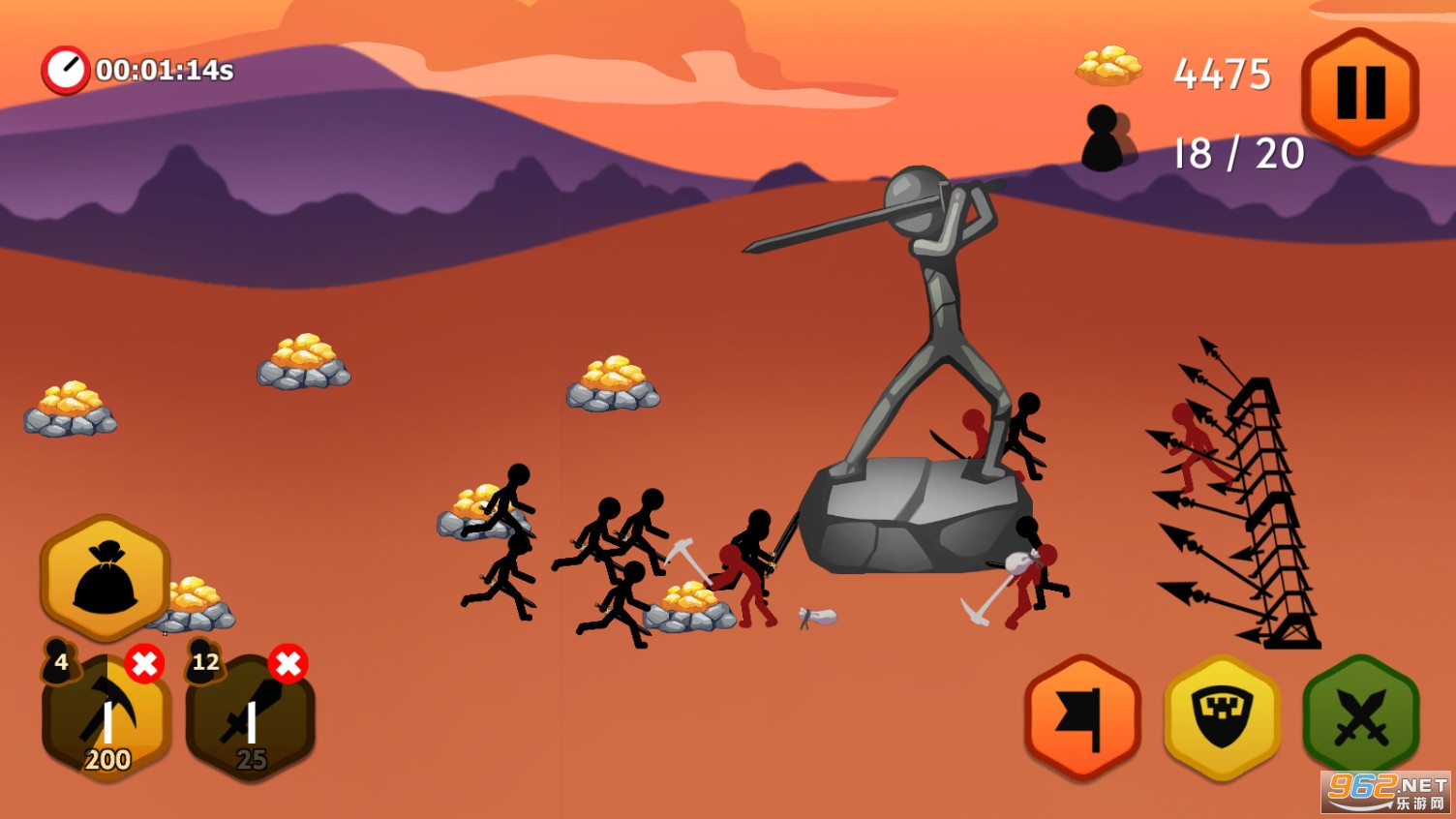 -建立矿工以收集贵重的黄金和宝石,可用于购买火柴人派对战士:矿工,剑士,弓箭手,重装步兵,巫师,奴才,弹射器,塔