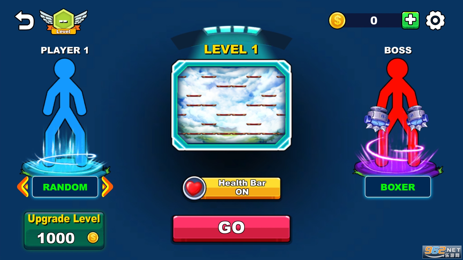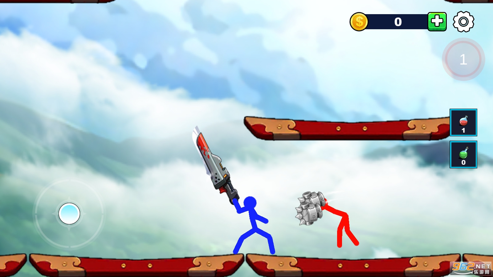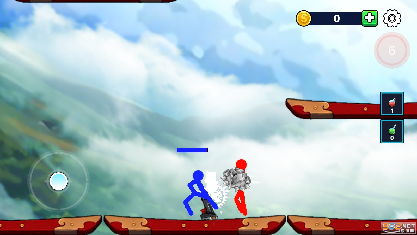 你以蓝色火柴人身份出战,选择不同的竞技场,每次战斗之前可以选择武器,也可以使用随机武器,只有合理利用这些武器的优势才能在战斗中获胜,没有复杂繁琐的必杀技,只需要看准时机,利用武器的特性给对方最大的伤害,直到击败对手,成为最高战士。