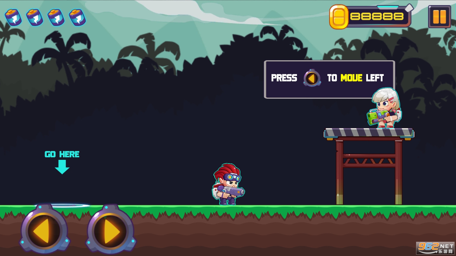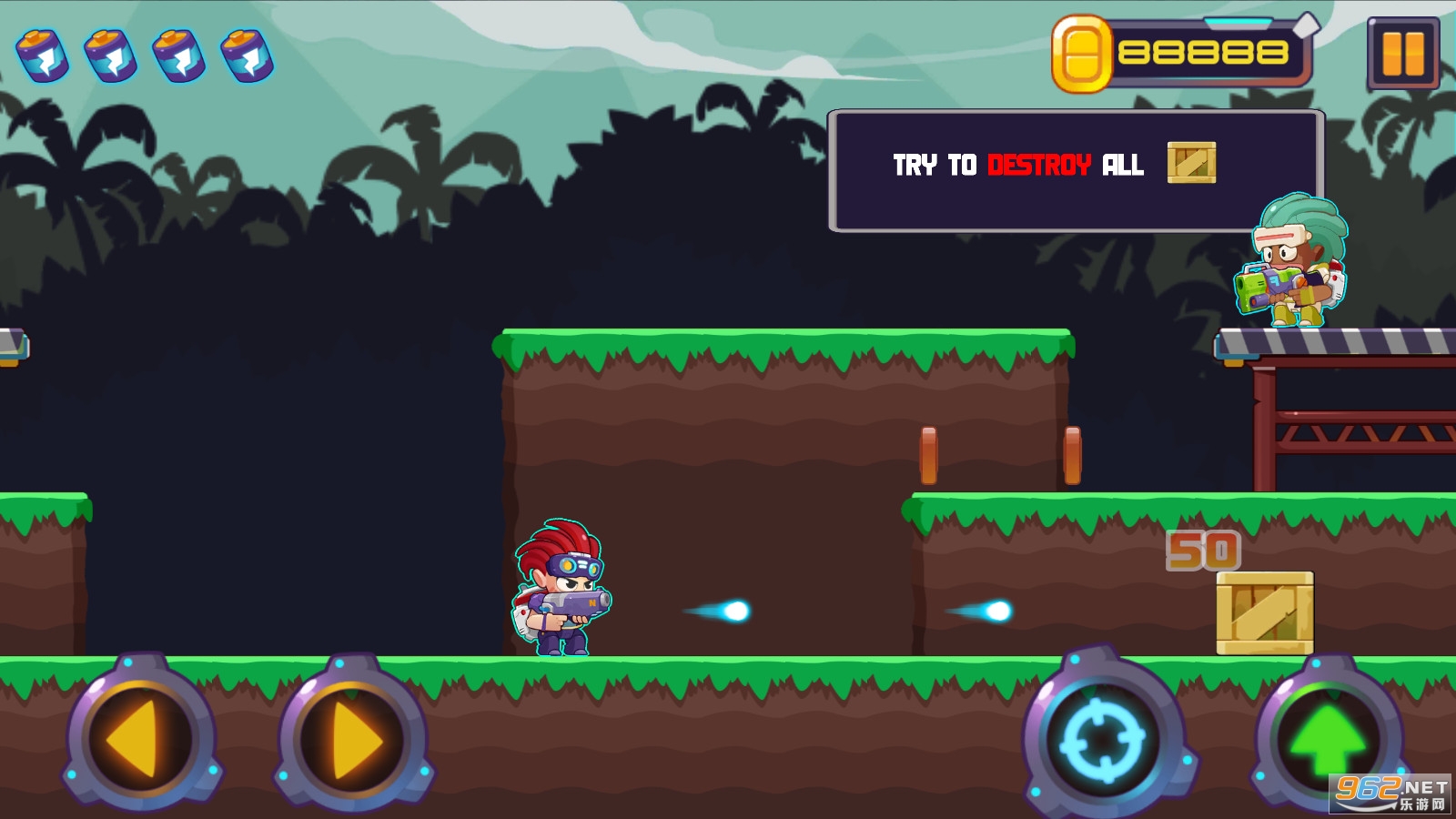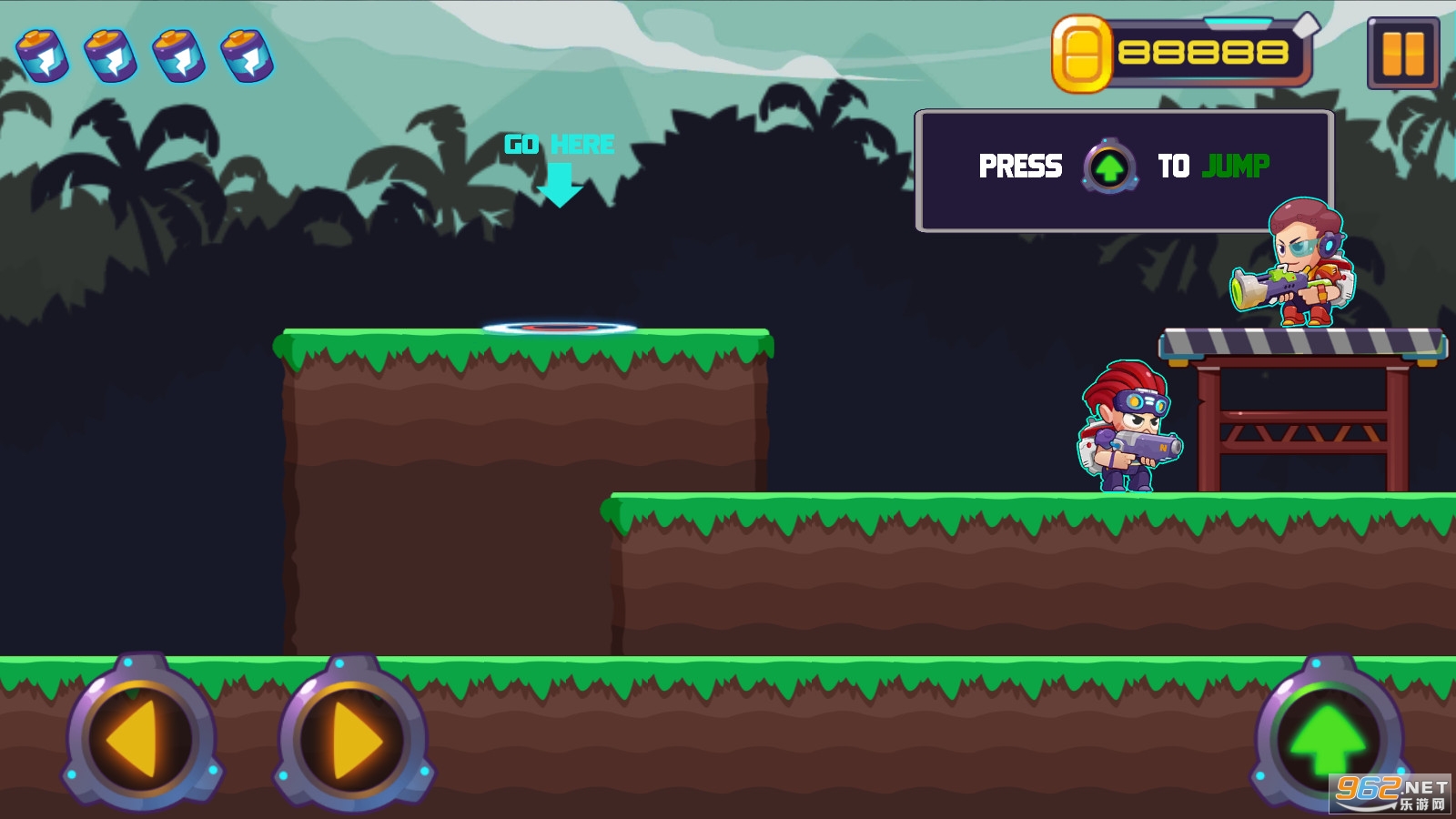 3、不断的跳跃闯关躲避敌人子弹,保持健康的生命;