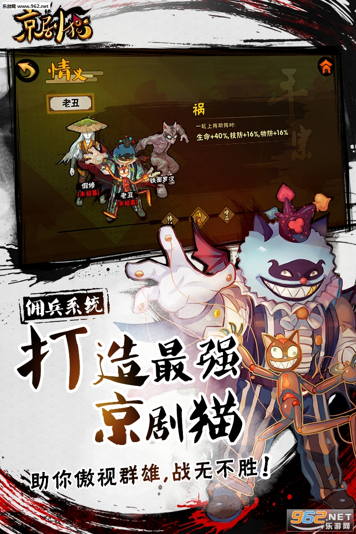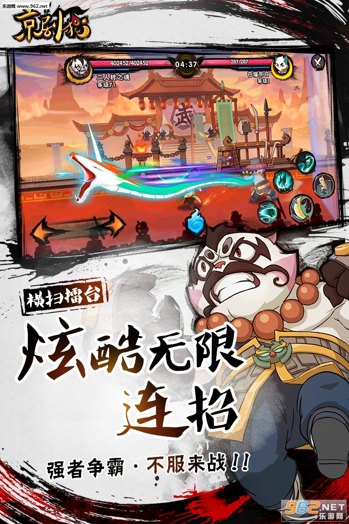 《京剧猫九游版》是一款非常好玩的水墨中国风横版动作游戏,在这款游戏中玩家将体验全新的游戏乐趣和玩法,精致的游戏画面,丰富的中国风元素,刺激的横版战斗类似的手游体验,感兴趣的小伙伴还在等什么?快来下载试玩吧!