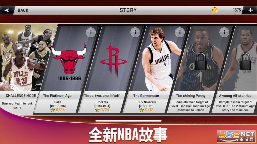 1、进行5个全新NBA故事模式游戏,细细品位著名NBA球星和球队的历史。