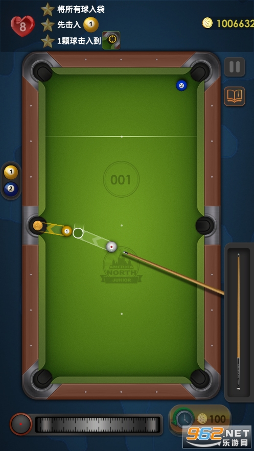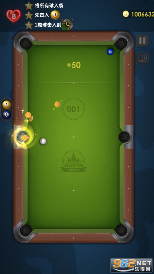 比较好玩的一款台球游戏,采用闯关的形式,操作比较的流畅,画面精致,玩法十分简单,里面拥有丰富的关卡让大家去挑战,让你可以在游戏中不断地通过完成任务提升球技,感受台球游戏的快乐!
