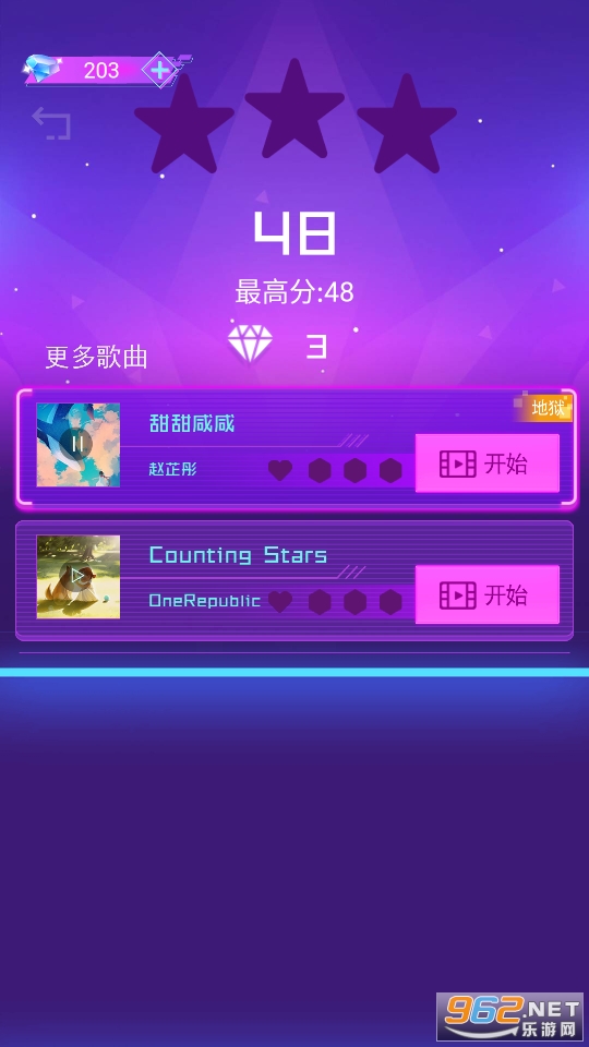 3.不错的打击感和特效的效果,可以挑战上百首热门的流行音乐的歌曲。