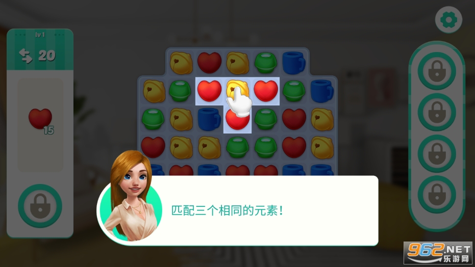 2、玩家通过消除的方式来解锁不同的饰品,这些装饰物多你的房间也会更精致;