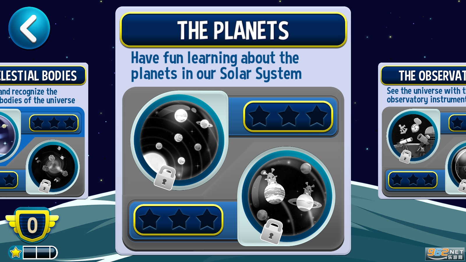 一款关于天文方面的太空模拟游戏,当你选择已经开放的星球进入到游戏当中后,会有天文博士来为你科普你所在星球距离某颗星球多远,你所在的星球的是围着什么星球公转、或者自转等等,对于小朋友来说宇宙奥秘中所蕴含的知识远远大于游戏本身!