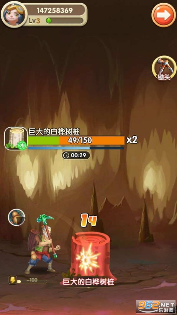 在简单的卡通环境中,快速升级这里的矿工可以提高采矿效率;