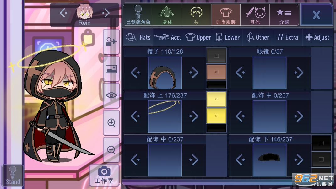 相比Gacha Life捏人可调的参数更多了(比如勾边颜色,头的大小,鼻子什么的),可选的颜色也多了不少,虽然有官中但意义(?)不大(游戏里大部分文本调成中文之后还是英文……比如剧情)这一作大概主角是一个DJ然后拯救世界(?剧情纯英文看的半懂不懂……菜 我 菜