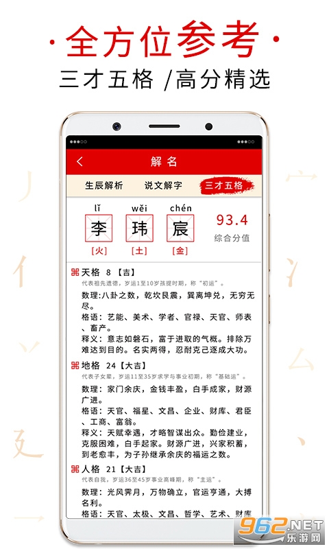【五格剖象】五格剖象法是依据姓名的笔画数和一定规则建立起来天格、地格、人格、总格、外格等五格数理关系,并以其所谓的81灵动数,智能推荐数理优越的吉祥名字。