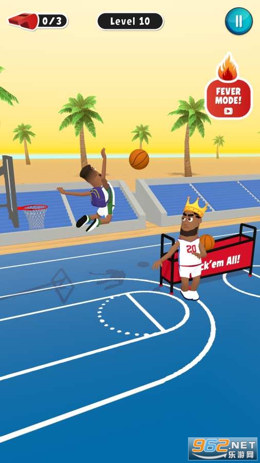 《盖帽大放送》是一款卡通画风的体育休闲竞技类游戏,能帮助大家很好的消磨时光,这款篮球游戏的竞技性一般,更多的魔性搞怪风格,无厘头的篮球动作,浮夸的过人和扣篮,大家千万不要一直尝试过人上篮,因为很容易被对手帽掉。