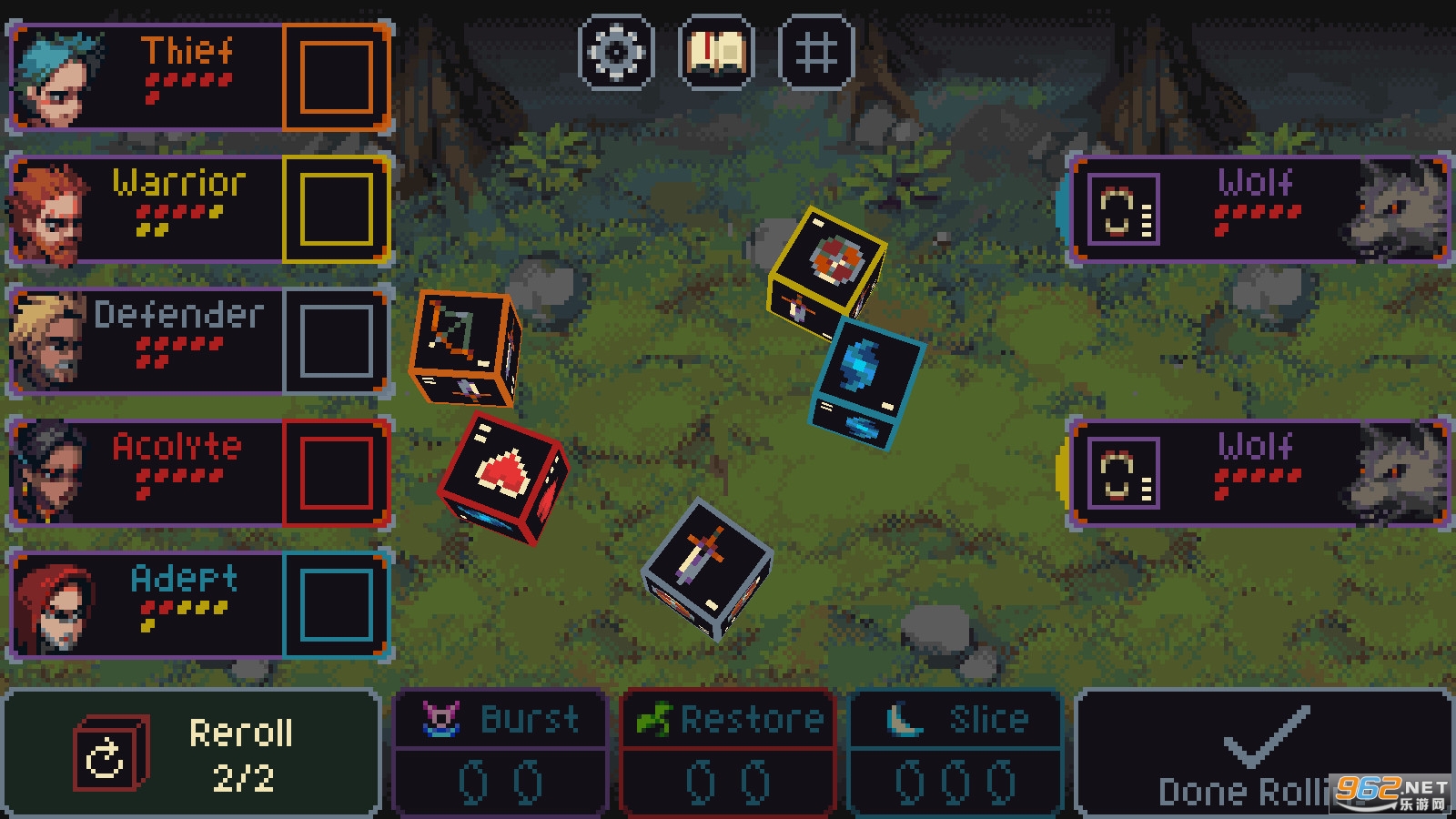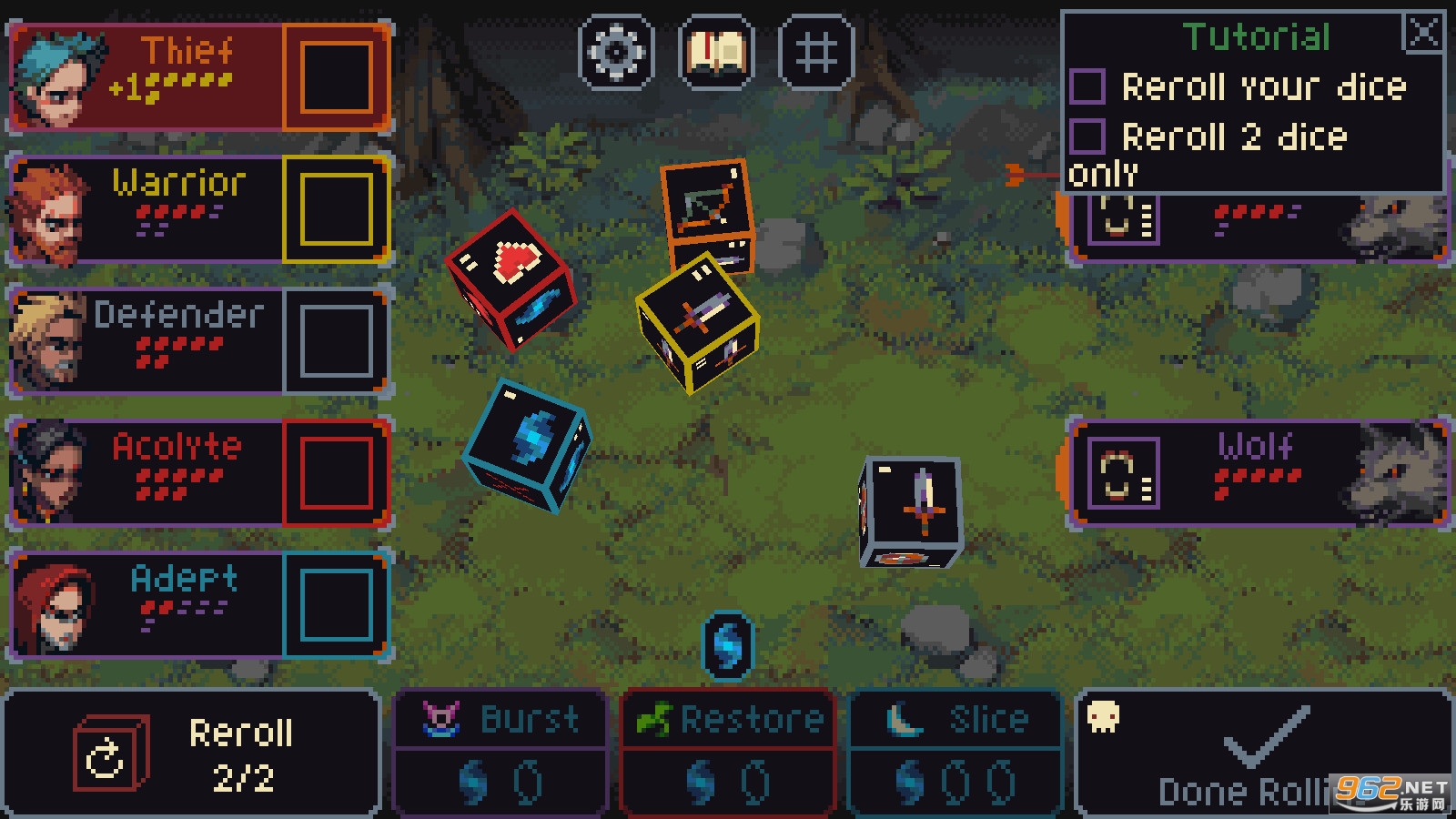 《切片和骰子》是一款有趣的像素风格休闲地牢冒险游戏,游戏中玩家将通过投掷骰子来确定冒险小队的行动,成功的对抗各种敌人,还有着丰富的养成系统,提升骰子的能力,获得更好的结果,赶快下载体验吧!