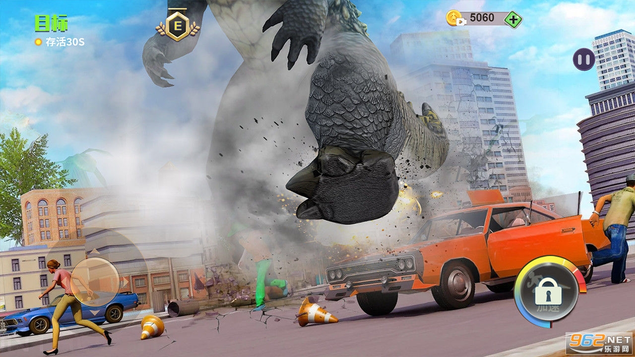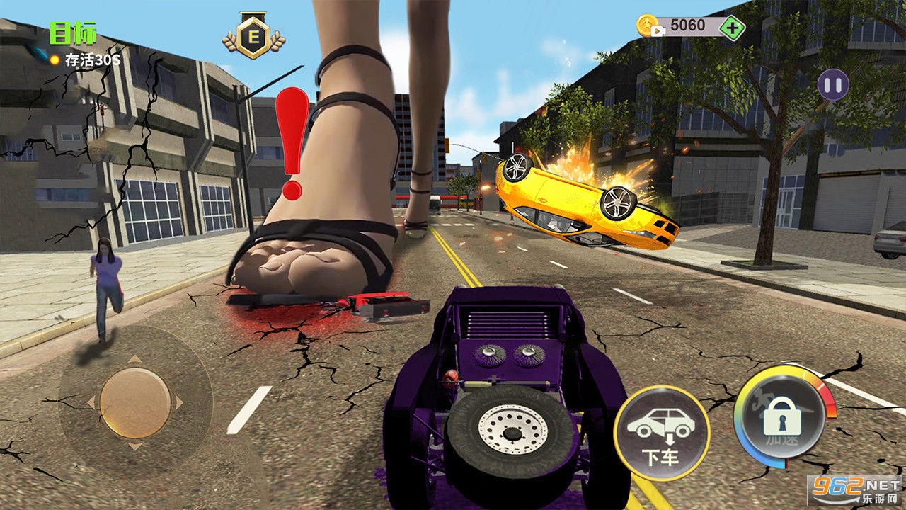 这是一款模拟巨人来袭人类四处逃窜的动作类游戏。游戏里你扮演的是一位渺小的人类,面对巨人的追捕,你能做的只能是躲开巨人的追击找到营救的直升飞机,登上飞机原理城市。稍有不慎,被巨人一脚踩住则会受伤失败。活下去成了唯一的目标。