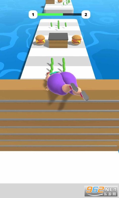 2、一路上都是汉堡,你要时刻提醒自己快速的躲避,同时收集黄瓜。