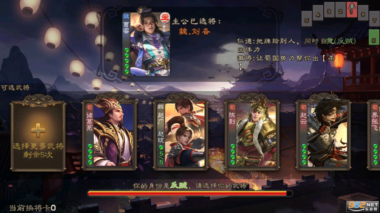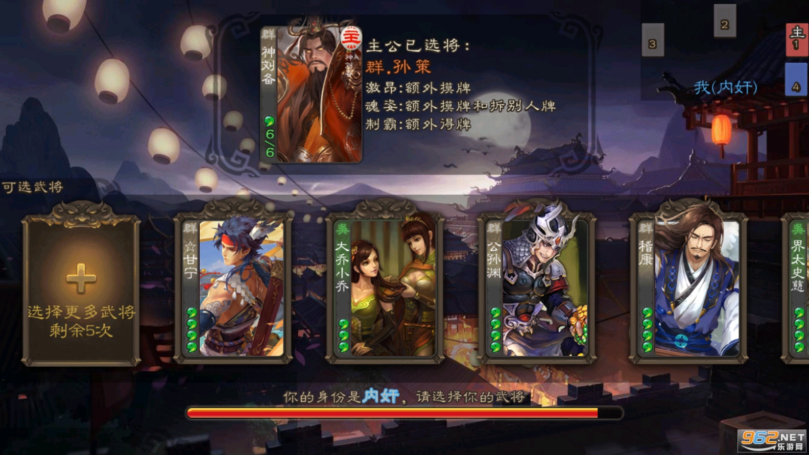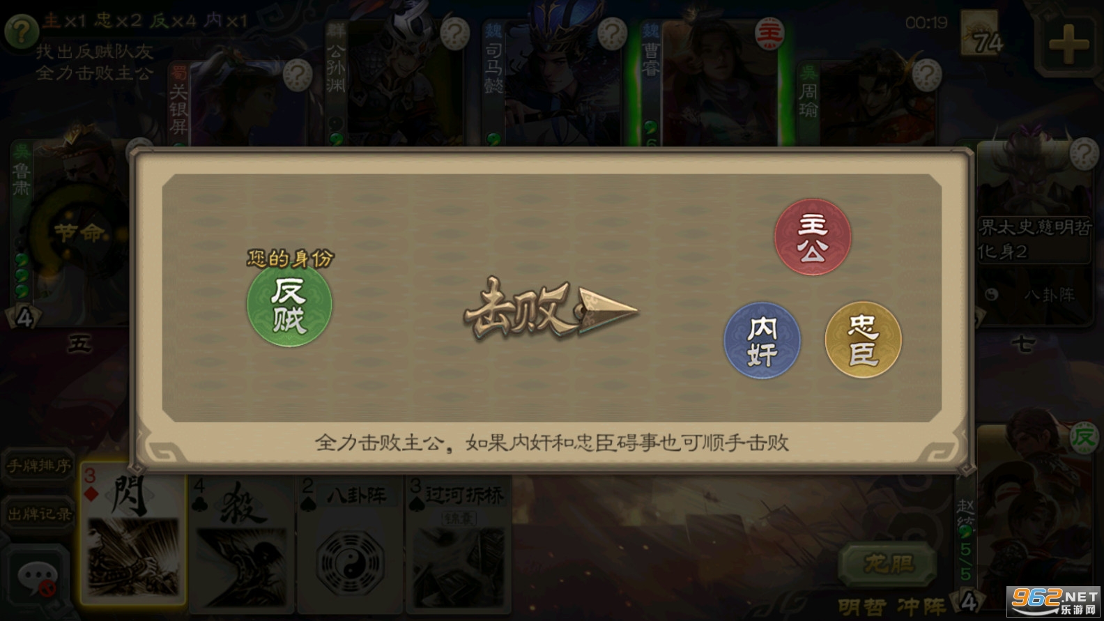 2、经典主、忠、内、反身份玩法,还原最初的“三国杀”桌游体验;