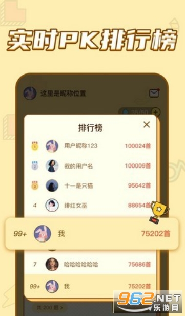 2、与其他玩家在线PK,到底谁才是猜歌房中的头号王者呢,快邀请小伙伴一起玩吧。