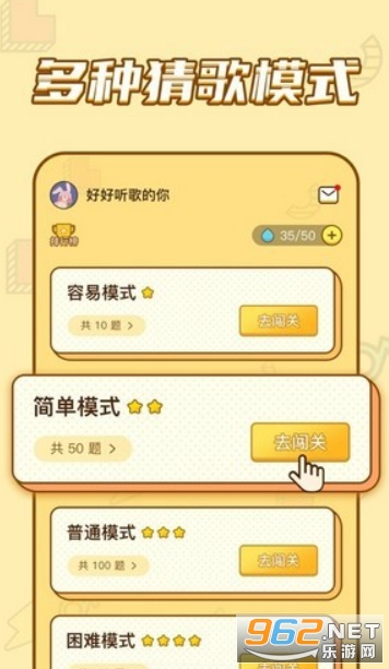 乐乐猜歌是一款可以领红包的猜歌闯关游戏。每猜对一首歌就能得到对应道具金币钻石,最终都转化成丰厚红包。玩法模式操作便捷简单,曲库歌曲数量庞大,活动实时进行更新,丰厚大奖等你抱回家。