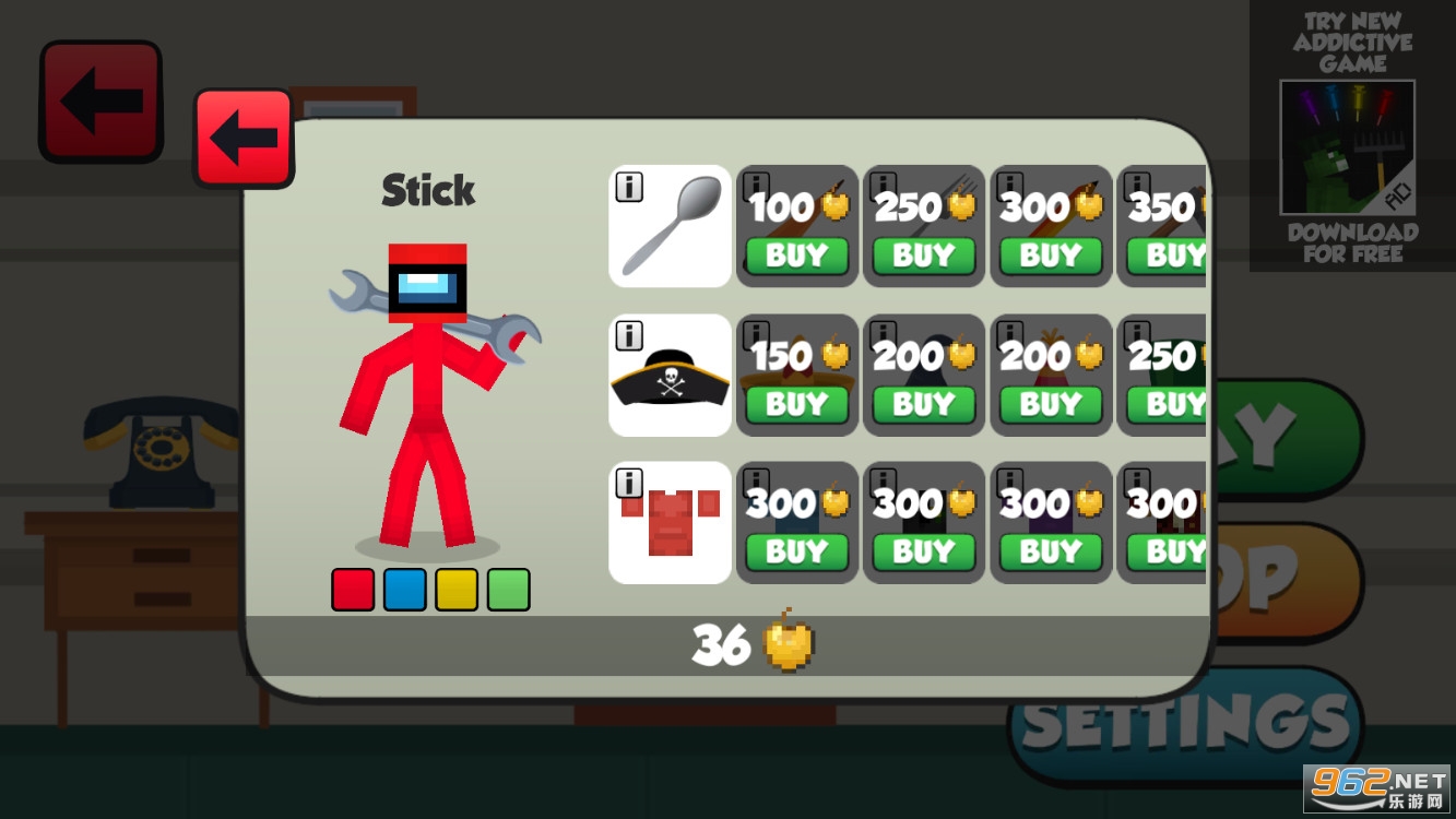您可以收集积分并购买武器、盔甲和许多可以用来为红色布娃娃火柴人购买新东西的东西。