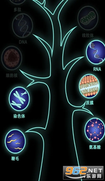 开局时,您是一个单细胞生物,而您的任务是长大并跟随一棵突变树;