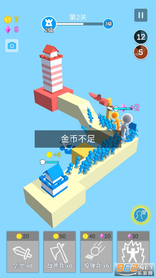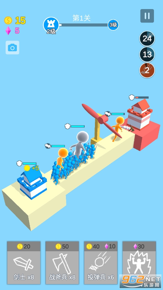 《人海战术》超有趣的休闲解压小游戏,在这款游戏中你将使用人海战术击败你的对手,让你的人数不断的变多,游戏的操作简单容易上手,还有着多样的挑战和玩法等待着你,招募不同种类的士兵,战胜敌人。还在等什么呢?现在就下载体验吧!