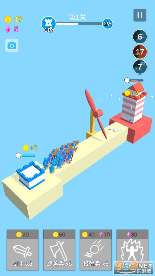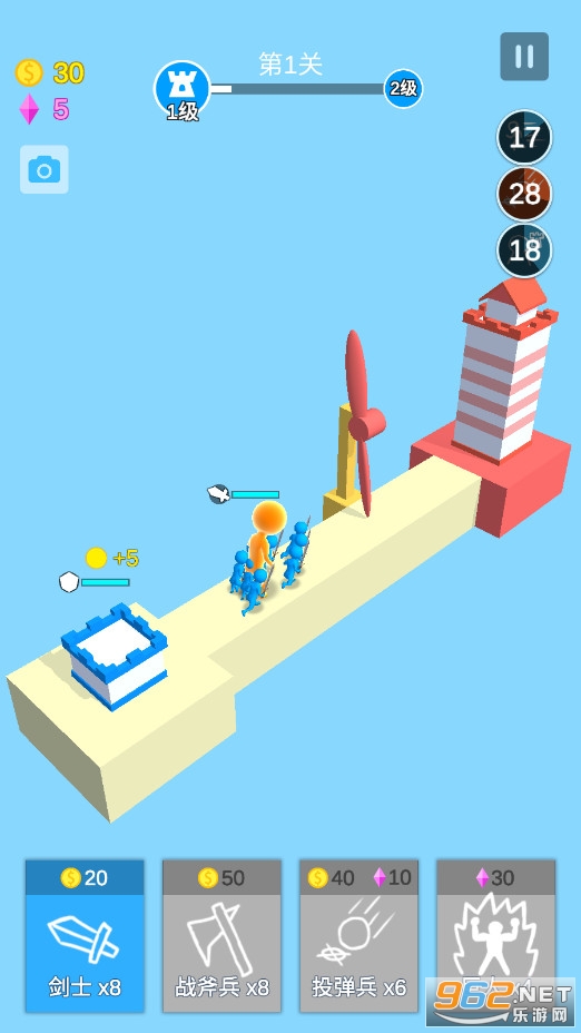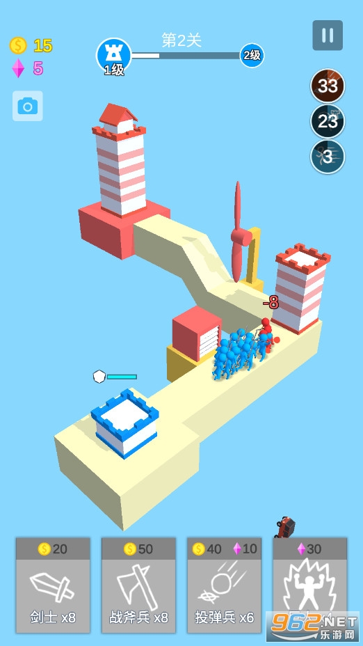 一款非常有趣的休闲策略闯关游戏,游戏中你将对敌人的堡垒进行攻击,在路上还有着不同的机关将削减你的人数,你将不断的派遣更多的士兵,招募英雄完成挑战,游戏的操作简单容易上手,推荐给喜欢休闲游戏的玩家。