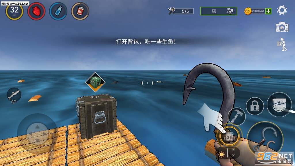 2、有一点运气,你可能会发现稀有物品和木筏免费升级,所以把钩子扔得更远。