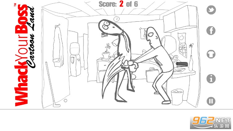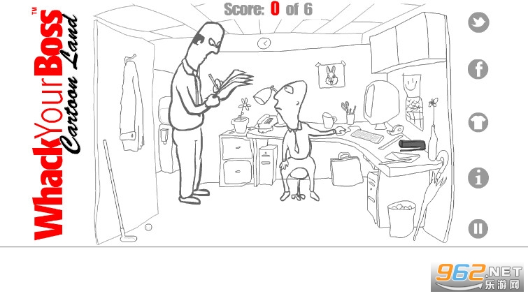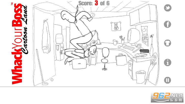 《暴揍你老板》(Whack Your Boss)是一款黑白线条组成的发泄类休闲手游,游戏中玩家受到老板的压迫决定奋起反抗,可以在房间寻找各种物品来暴揍老板,比如可以和老板握手然后将老板揉成麻花,可以选择抽屉将老板装抽屉,可以选择雨伞来敲打老板等等。