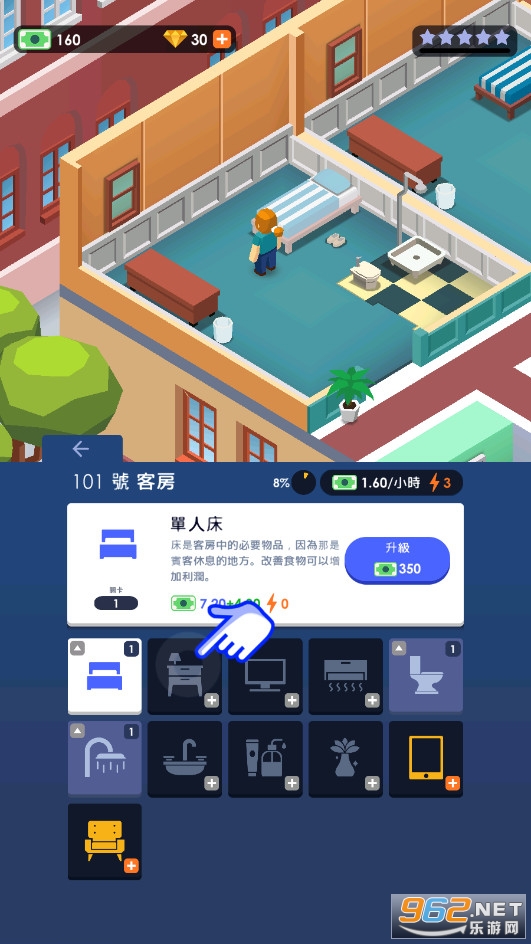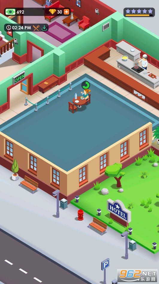 2、玩家可全面扩建酒店的面积,升级酒店装修得更加豪华,赚取更多利润。