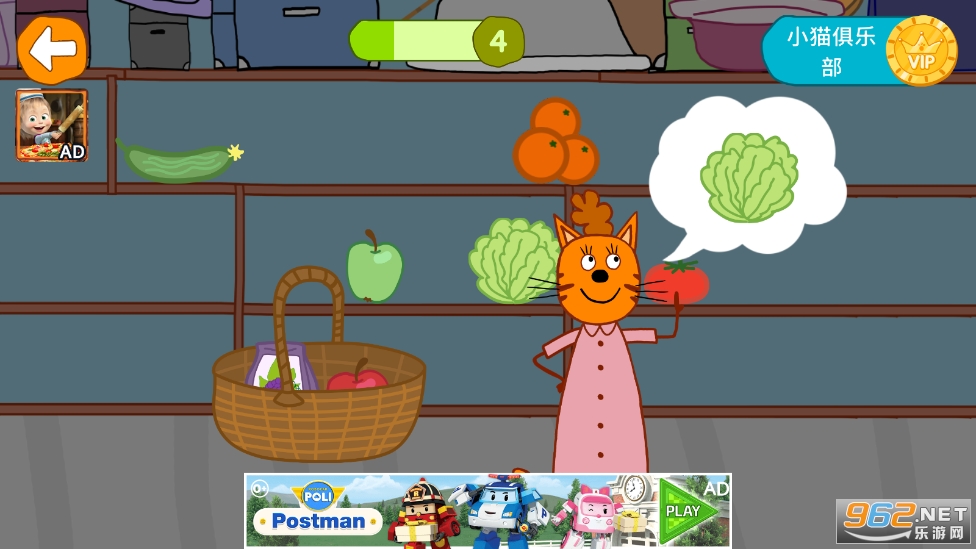 帮助小猫带一些食物到森林:猫妈妈知道她的家人喜欢吃什么,按照指示挑选合适的食物玩小猫游戏!