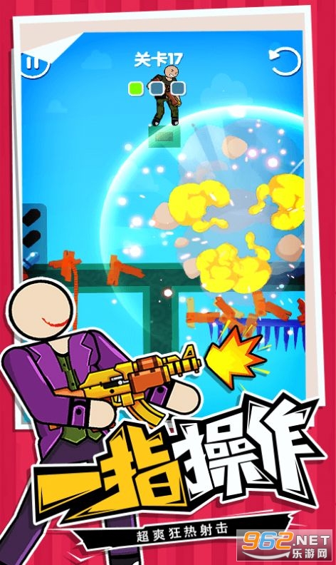 化身成为火柴人战士开启你的关卡冒险之旅吧,用灵活的操作和精湛的枪法去干掉所有敌人,勇敢一点,一定要和对面的敌人血拼到底,千万不要轻言放弃,最精彩操作手感极佳的动作射击游戏,相信你一定会喜欢的。