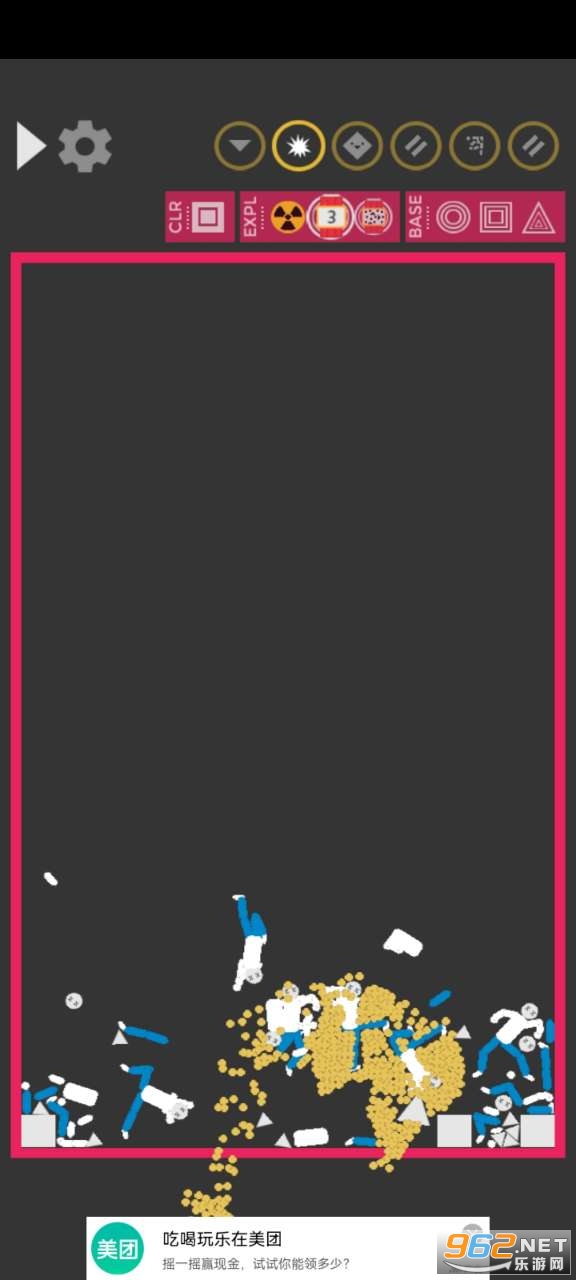 一款非常有趣的休闲物理模拟游戏,游戏中你将在这个2d的沙盒中自由的添加不同的物体,然后进行各种各样的爆炸实验,甚至还可以使用核弹来进行爆破,游戏的玩法轻松有趣,推荐给喜欢休闲游戏的玩家。