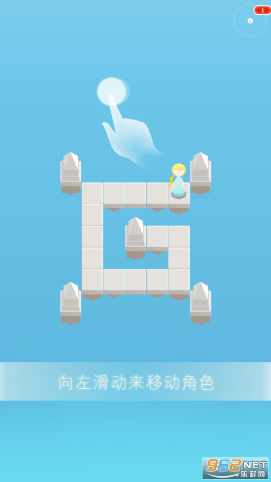 游戏中公主会站在某一块砖块上,你要做的就是让她一块不落地走完每一块砖块,开始的关卡简单,只要顺着道路走即可,接下来的关卡会出现各种难度的障碍。当公主从一块砖走到另一块砖的时候脚下的路便会消失,直到脚下剩下最后一块砖为止才算过关。
