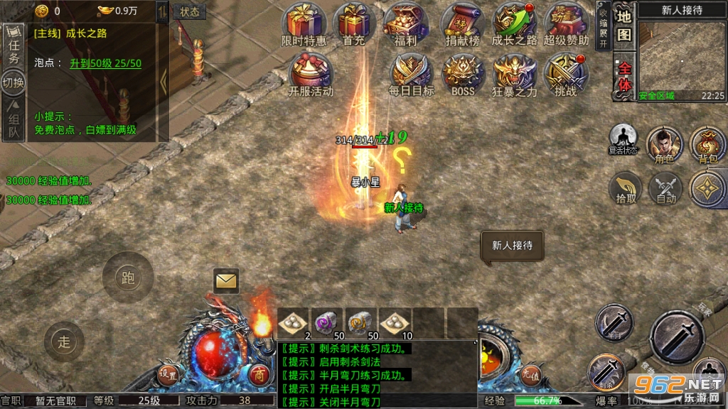 3、散人就要脚踏实地的干,先从散人地图开始打怪,还可以双开打怪,出的装备和元宝更多哦!