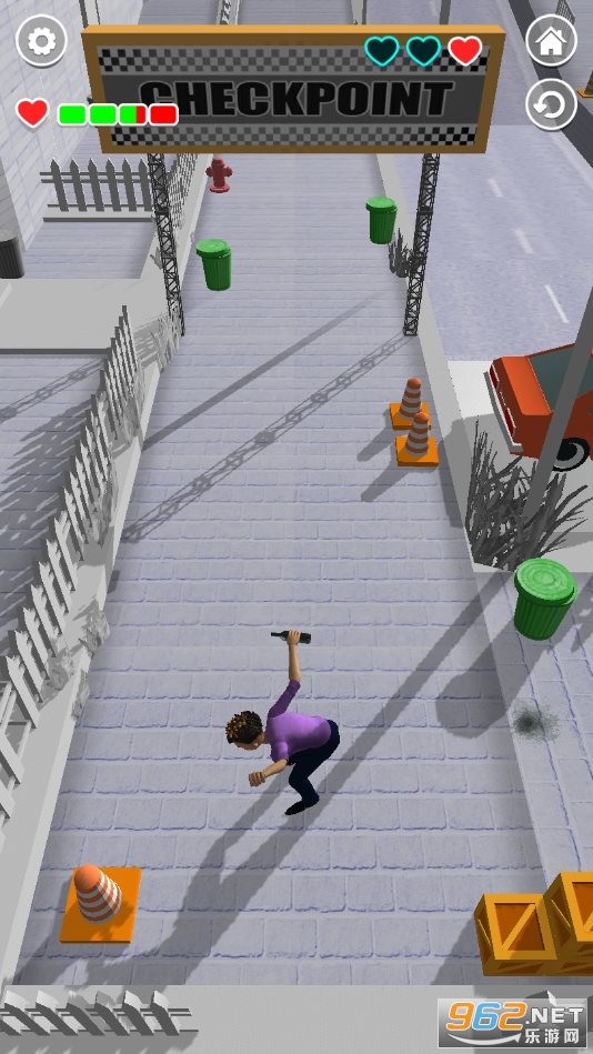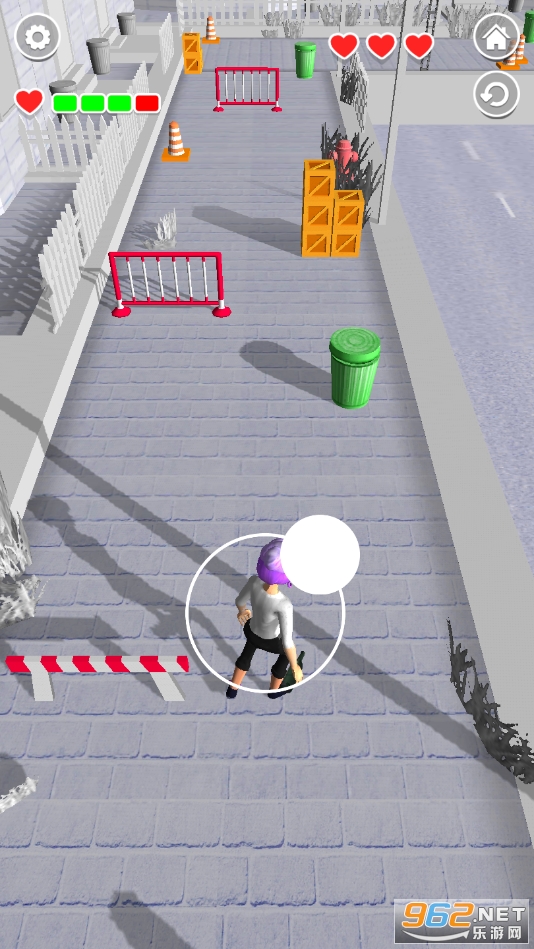 Drunk Walking游戏是一款玩法非常奇特的休闲闯关小游戏,操控一个醉汉在街道上行走,迈着摇摇晃晃的步伐,你需要非常艰难的控制它躲避每一个障碍,只有掌握它的摇晃节奏才能让游戏难度变得轻松,让自己尽可能保持较高的生命值来通关。
