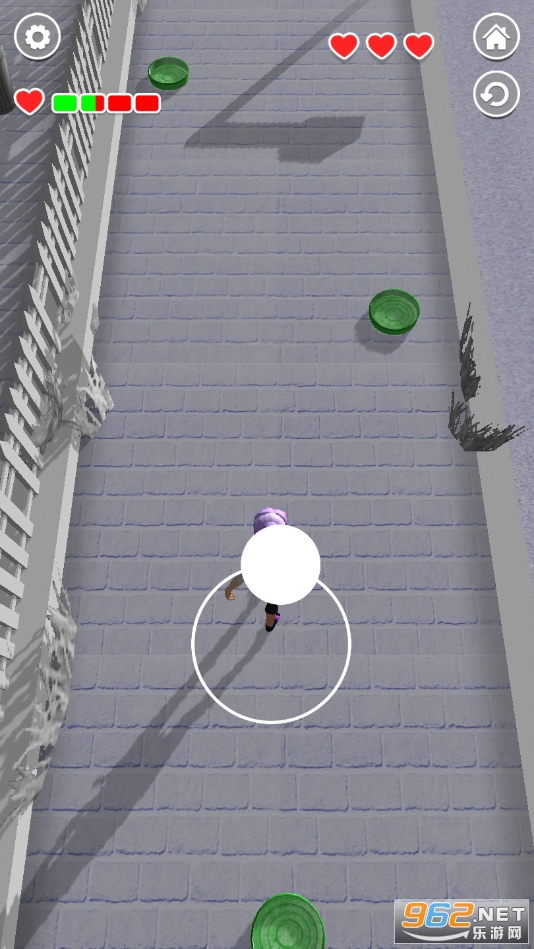 1、滑动屏幕上的方向轮盘,控制醉汉走路;