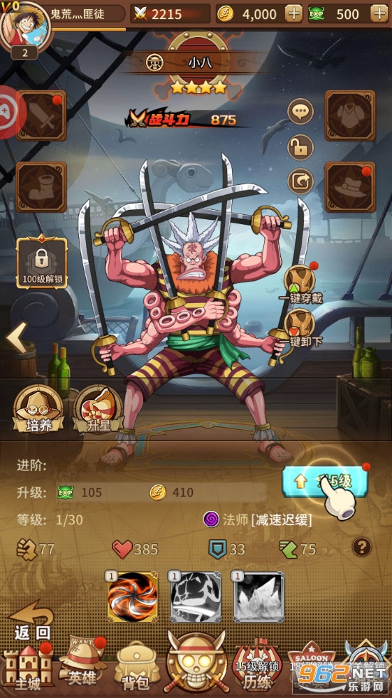 4、通过经典动漫海贼王改编而来,游戏内的角色都是高度还原动漫内的角色,保留了每个角色的性格特点!