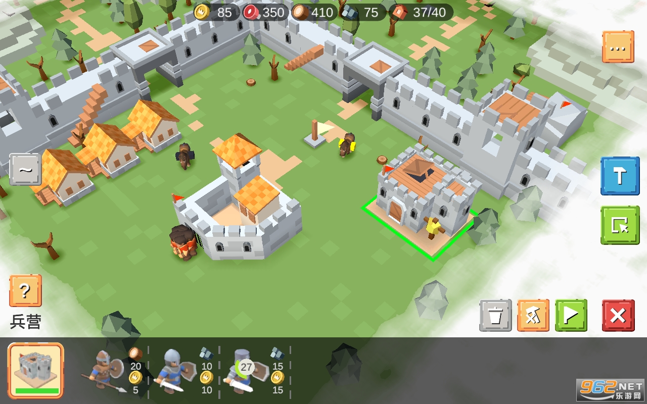 兵营-训练近战士兵射击场-训练弓箭手和cross手稳定-训练骑兵工作坊-建造弹射器和ball弹枪造船厂-建造船只塔-攻击敌人。它具有许多健康点。墙壁-由塔,墙壁元素,楼梯和大门组成。大多数士兵可以进入隔离墙。墙壁只能用弹射器摧毁。完全破坏的墙壁仍然可以修复。在游戏初期,您需要建立有效的经济体系。资源应足以组建一支计划中的军队。不要忘记保护。在游戏开始时建造一两个塔。在进攻中,军队需要增援。兵营可以让您为战士们集结点。