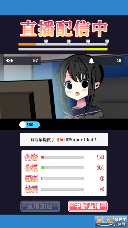 虚拟主播一种全新的直播方式,使用虚拟的人物形象虚拟的人设来吸引粉丝来进行经营,游戏的操作简单容易上手,不断的锻炼自己的能力,选择不同的直播内容,获取更多的订阅,推荐给喜欢休闲模拟游戏的玩家。