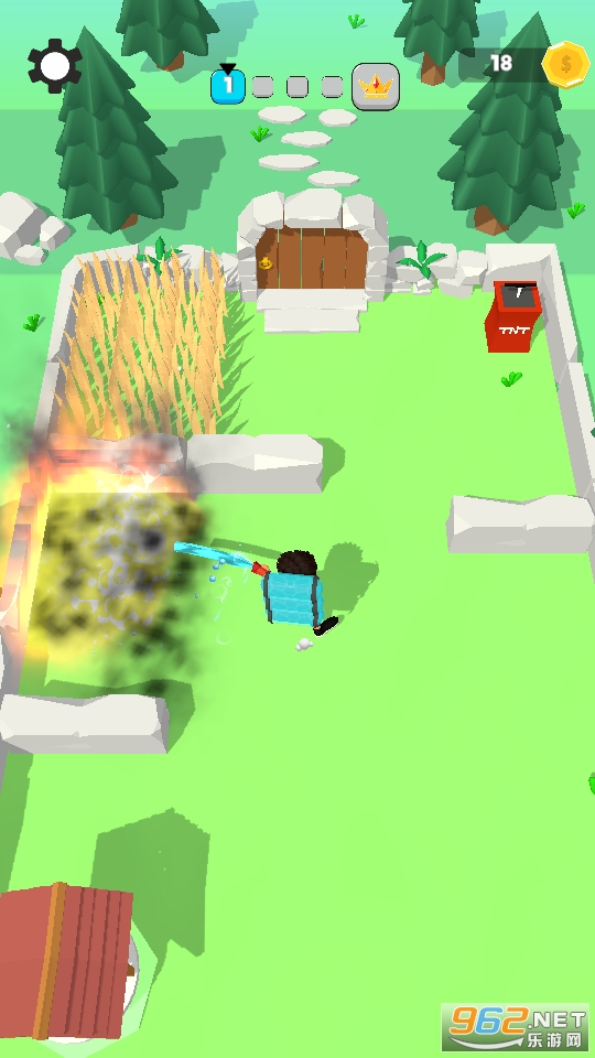 玩家在游戏中的主要任务就是灭火,有条理性的收集水资源并且在规定的时间内完成灭火的任务,如果长时间没有熄灭火势越来越大就会被判定闯关失败。
