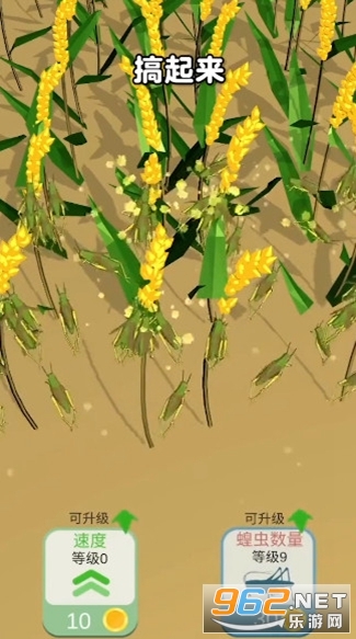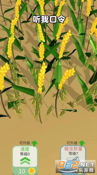 模拟蝗虫去吃庄稼,可以通过消耗金币来升级技能,获得更多的蝗虫,看着大量的蝗虫蜂拥而出,吞吃遇到的各种作物,升级的属性越高,吞吃的速度愉快。