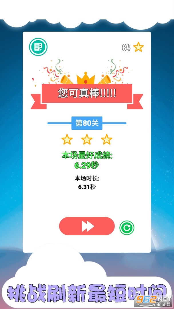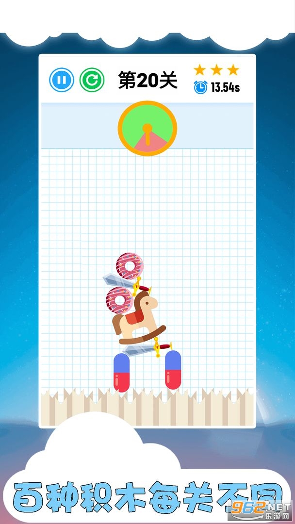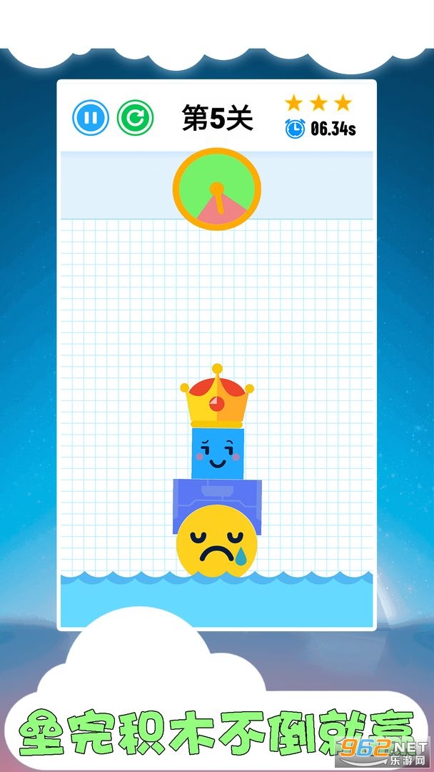 2. 当所有积木拖下后,在倒计时结束前,并保持平衡不倒!