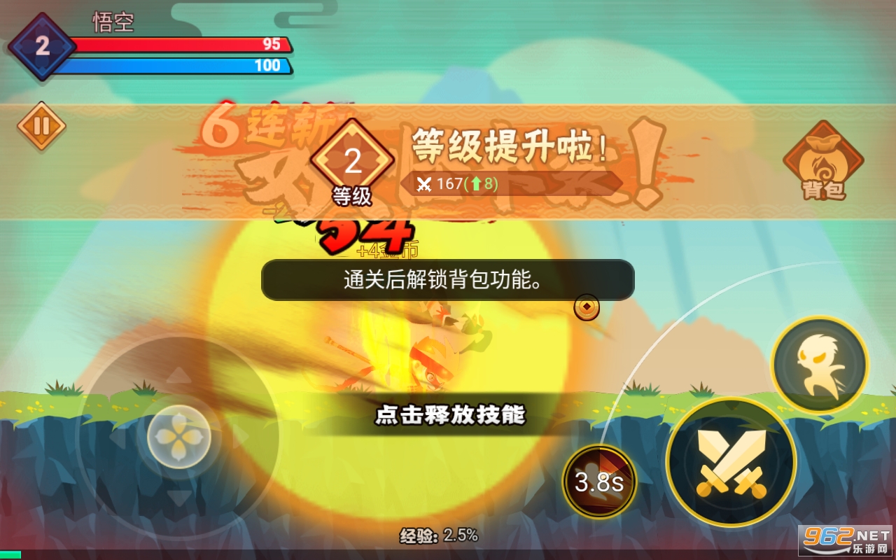 1、帮助玩家迅速完成任务,实现击败敌人的终极目标,同时当玩家点击技能攻击时会伴有炫酷的特效出现,增强游戏的动感和体验性。
