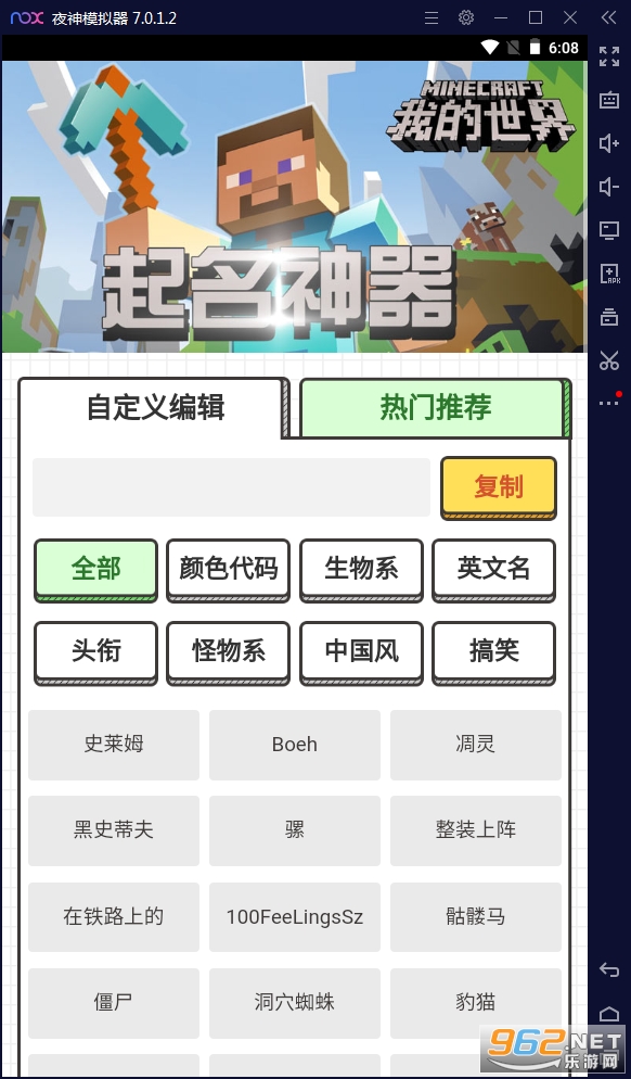 一款非常给力好用的手机取名神器,软件可以为多款游戏中的角色取名,其中包含有王者荣耀、我的世界、球球大作战、qq飞车等热门,喜欢的朋友来962下载吧!