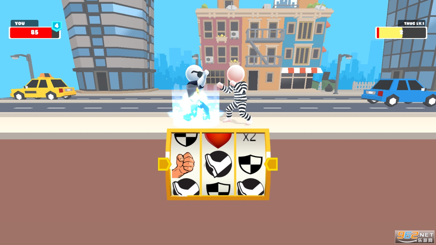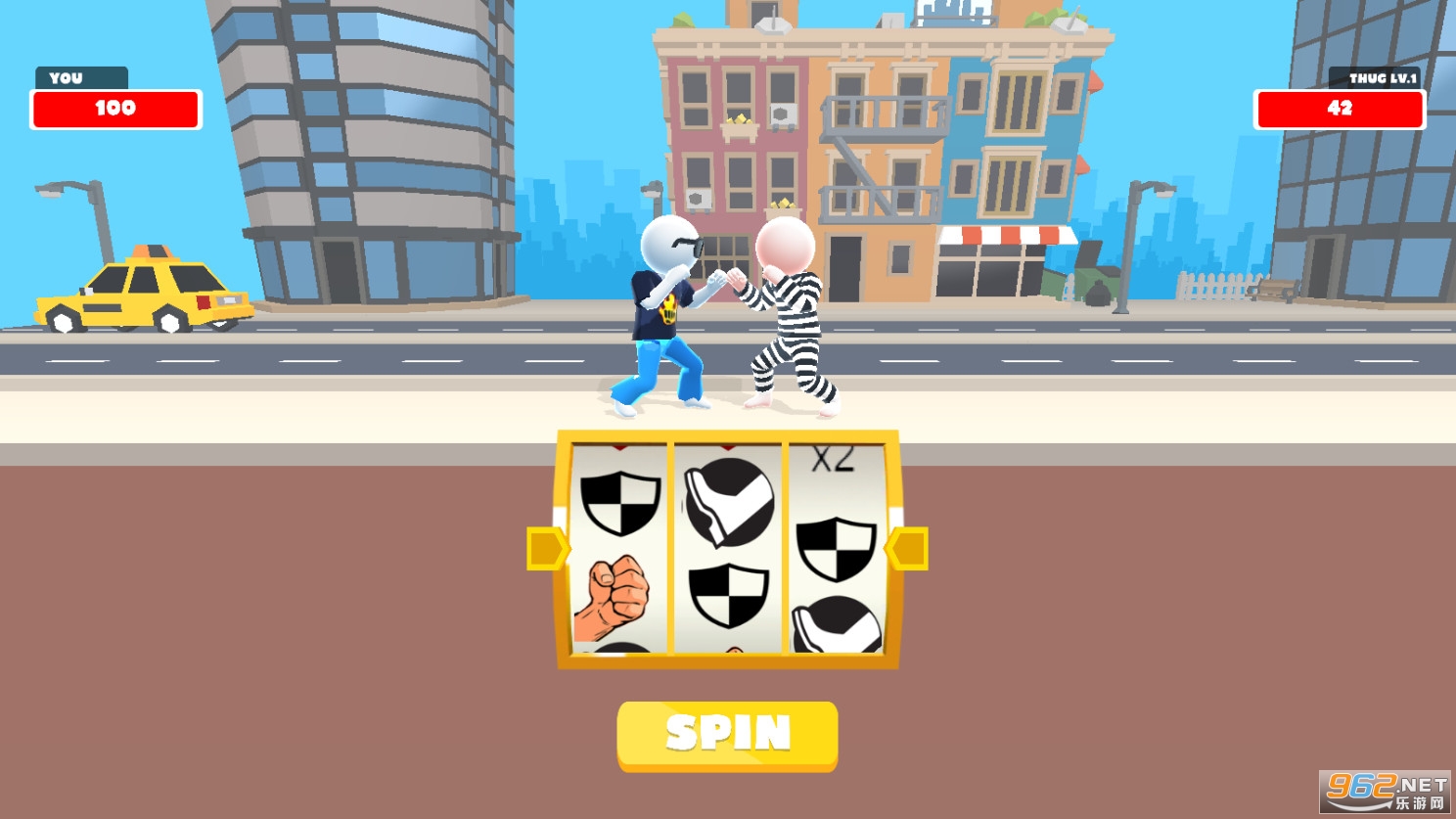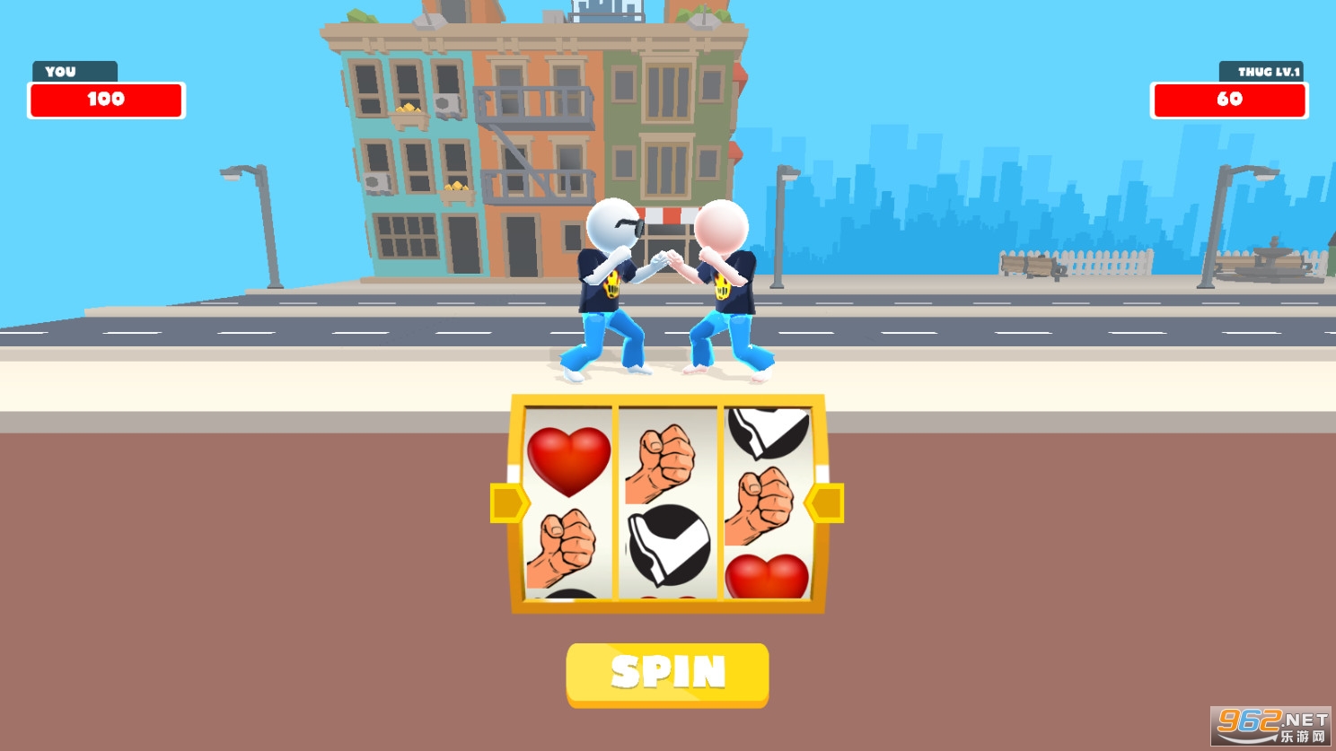 一款有趣的休闲闯关游戏,在这款游戏中你将通过转盘来进行战斗,转盘中有着拳击、踢腿、防御、回血等不同的动作,根据转到的项目来进行对应的动作,你能够在随机出招的战斗中获得胜利吗?快来试试吧!