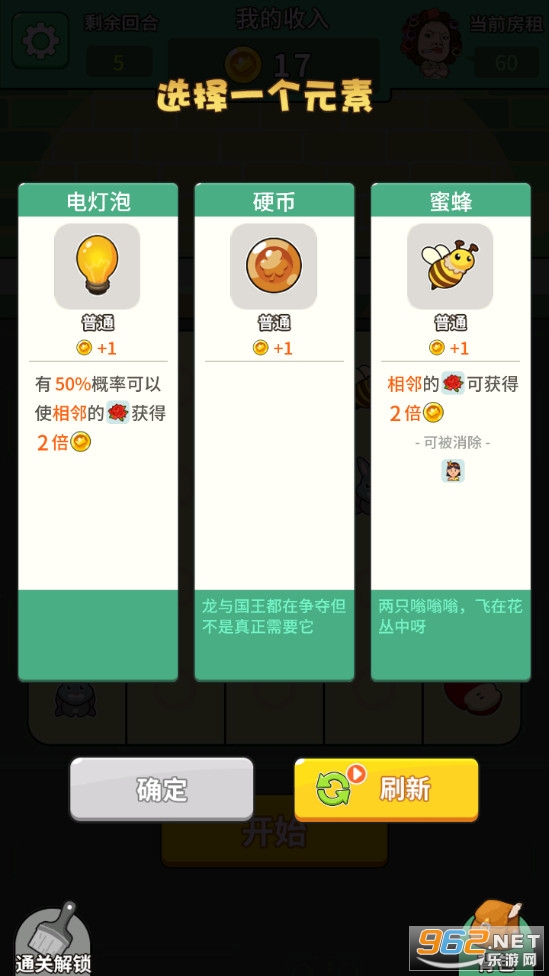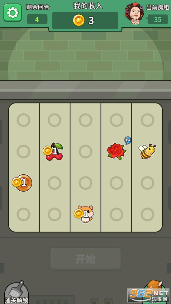 roguelike策略游戏,玩家将帮助打工人赚钱交房租,可以玩一些小游戏,当出现的物品组合不同你赚取的金币也会不同,在回合制结束后需要赚到房租钱,注意房租是会涨价的。