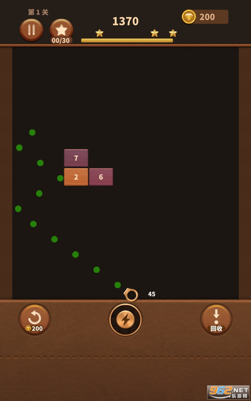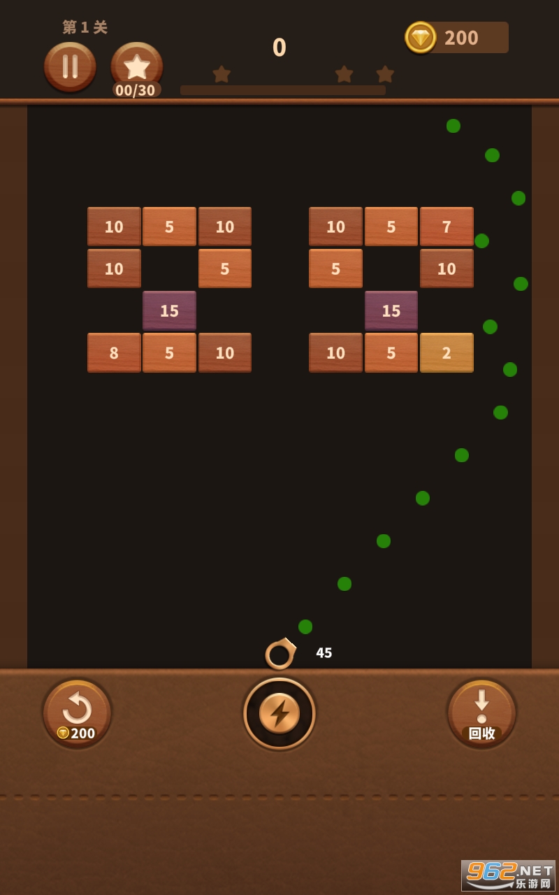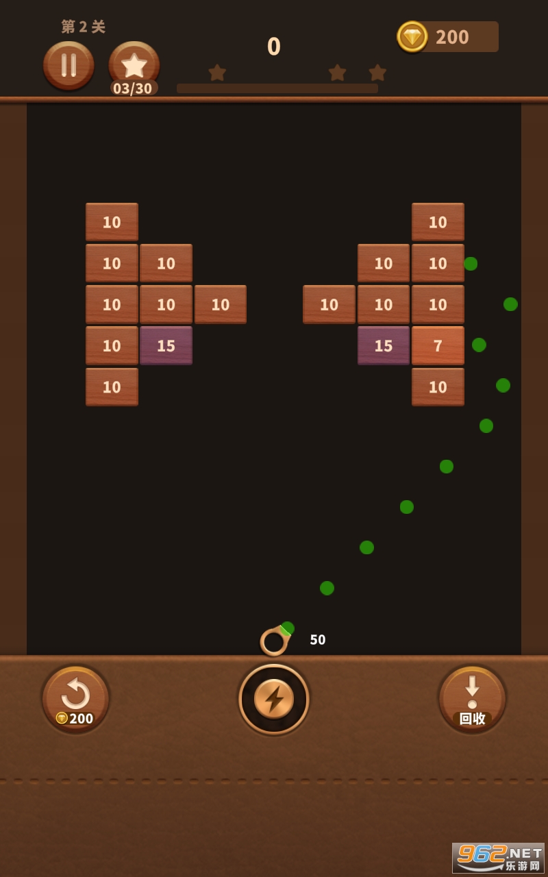 游戏操作与规则也很简单,按住屏幕水平拖动手指瞄准,放手发射等待所有发射中的弹球击碎砖块!