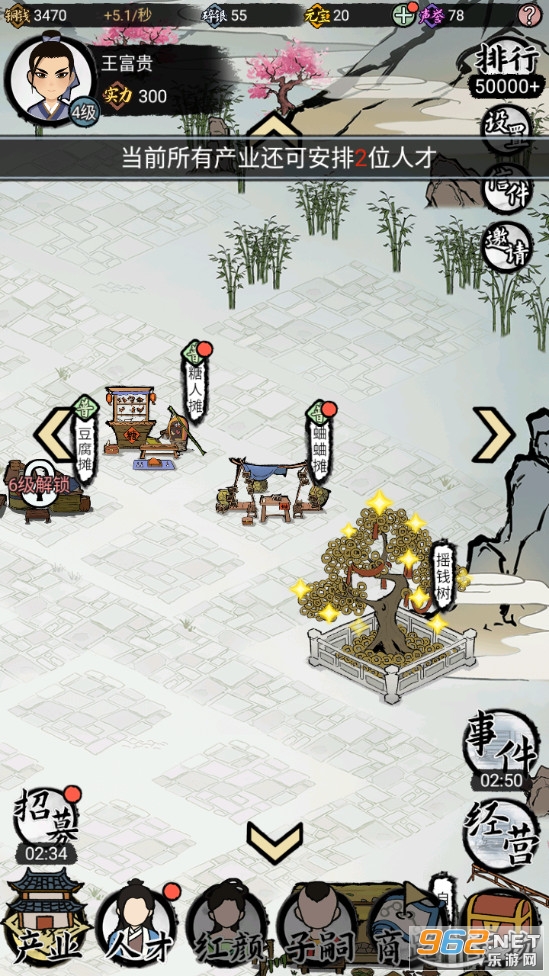 从众人中挑选合适的人才来帮你管理产业,你才可以快速的成为首富~
