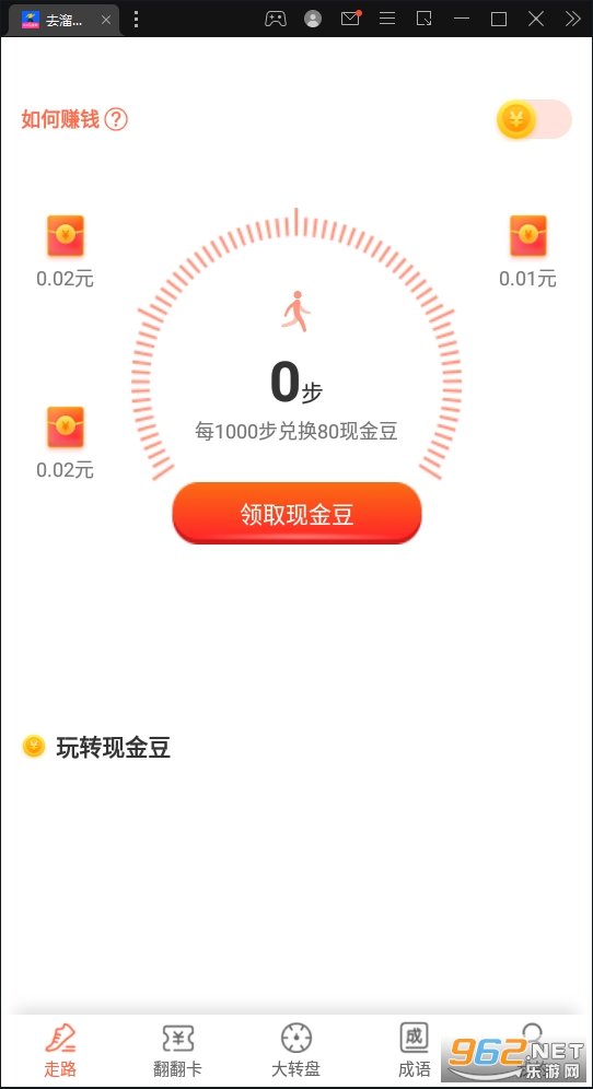 《去溜达安卓版》是一款走路运动赚钱软件,操作简单,功能强大,不但可以打发无聊的时间,通过每天的运动来赚红包,运动步数越高奖励越好,感兴趣的小伙伴还在等什么?来962下载试试吧!