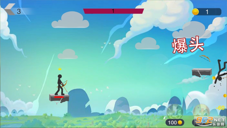 2、游戏是有爆头设定的,也就是只要你一箭射中对手的头,就能一击必杀。