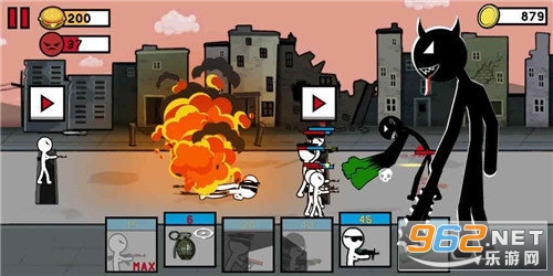 攀上新的台阶,以解锁令人兴奋的传统部队和军事装备。您可以使用火柴人队长,火柴人士兵,大炮,掩体,火柴人狙击手,火柴人机枪手,卡车,火箭筒,矿山,烟雾,坦克等等。目标是与您所有的火柴人部队一起穿越战场。